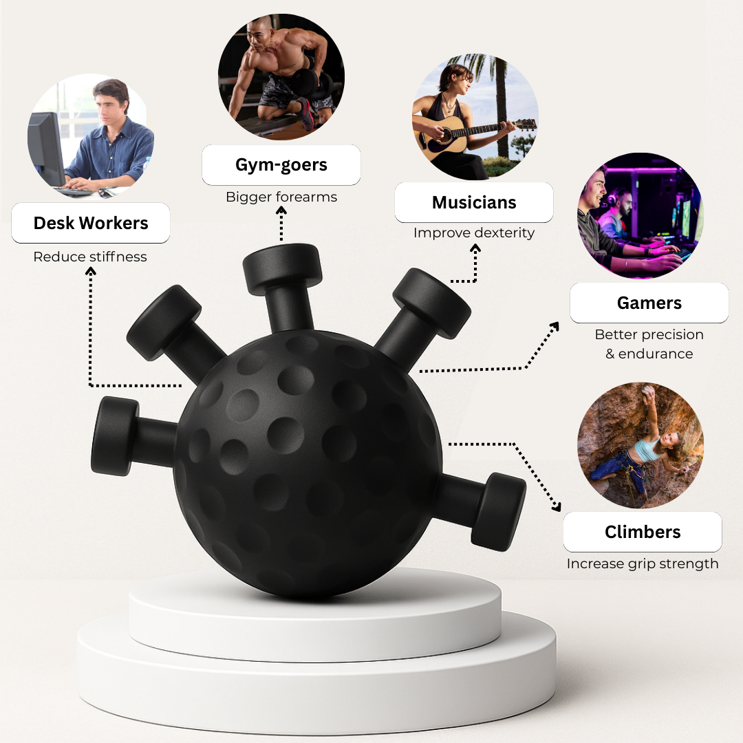 You donβt need a gym. You donβt need a lot of hours. All you need is a few minutes a day. PowerSphere's unique multi-directional design helps anyone β beginners, athletes, gamers, and everyday users β build stronger, more defined forearms in just 21 days.